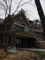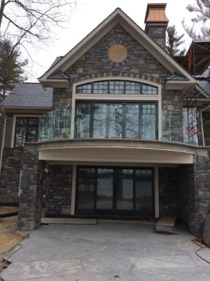 Bent Glass Railing - Muskoka summer home deck railing made with our Bent