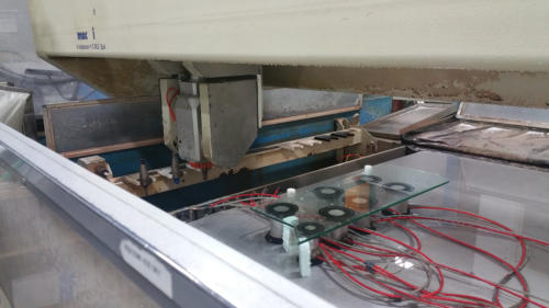 Automatic straight and shape cutting to tight tolerances 3mm to 19mm glass thickness Sheet size up to 102" x 144" Cut from AutoCAD DXF files